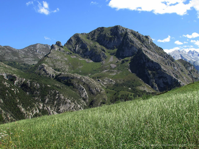 Toda una cadena de montañas, los Picos de Europa y el Pico Pierzu enfrente.